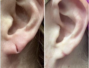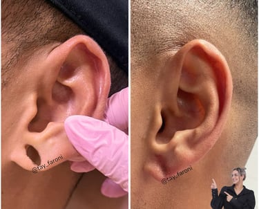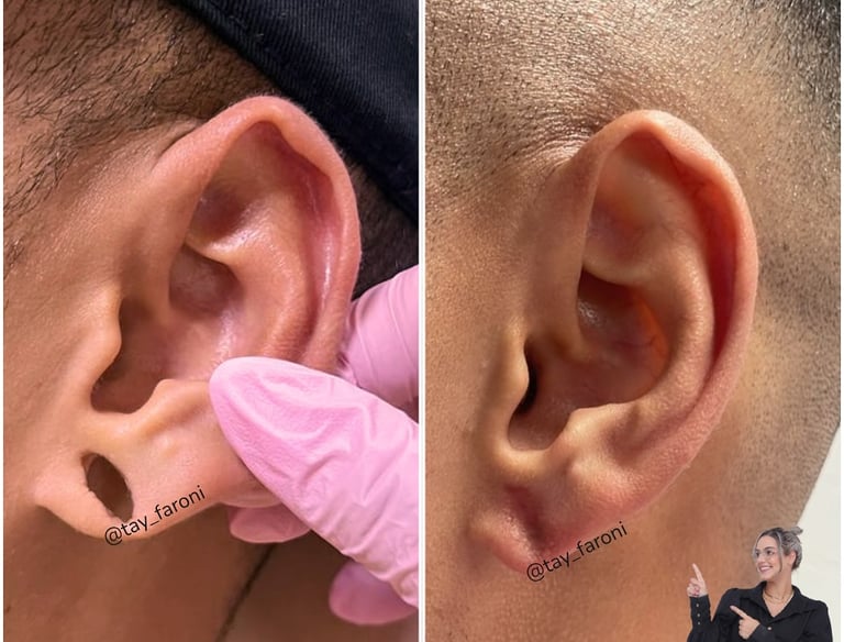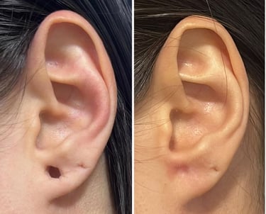 Se você tem o lóbulo (orelha) rasgada por uso de brinco, alargador ou tem os furinhos tortos e não aguenta mais esconder as orelhas, o nosso método com certeza é para você!
