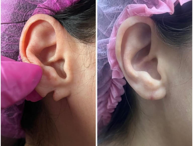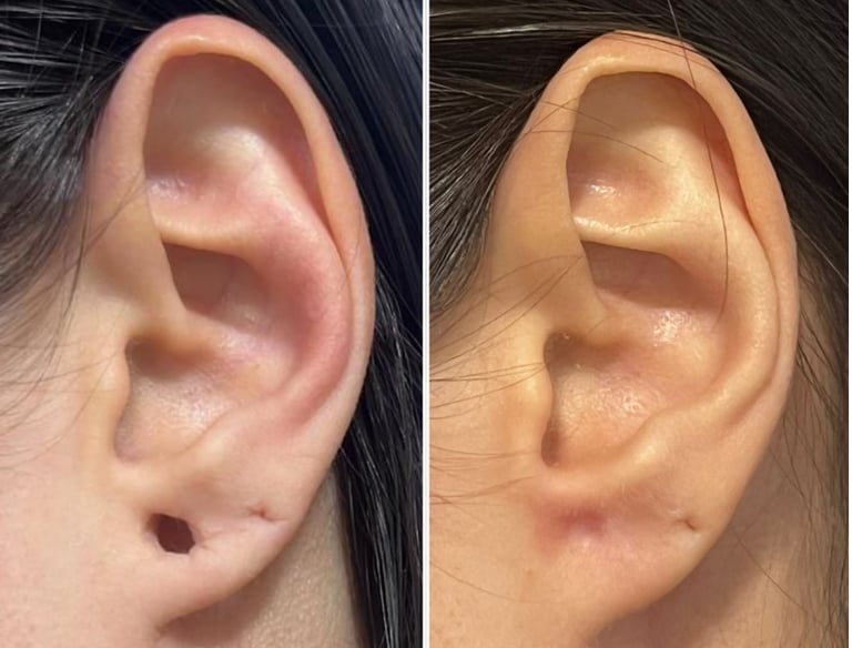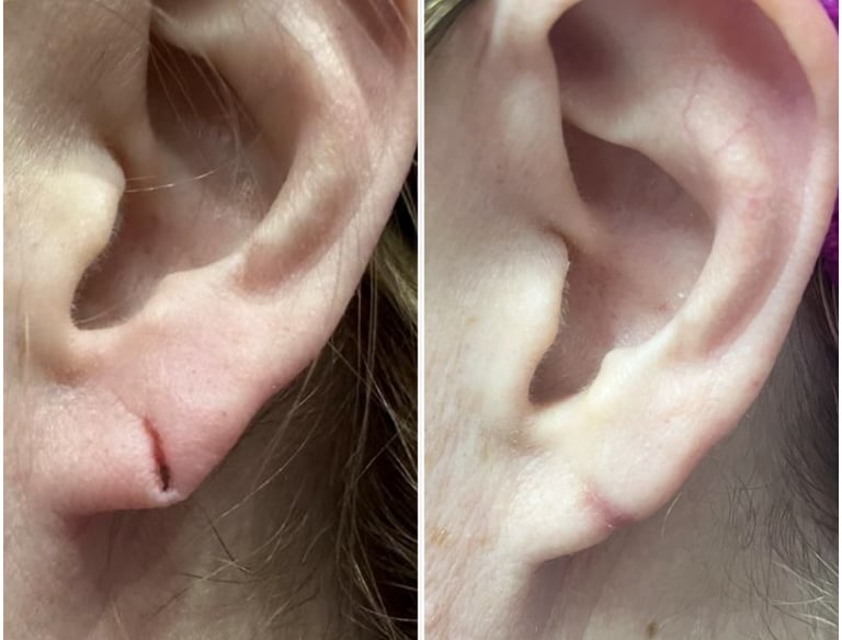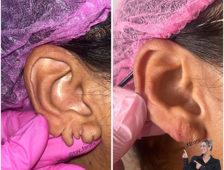 Reconstrução avançada de lóbulo: a técnica não invasiva que devolve a liberdade de usar suas joias favoritas.